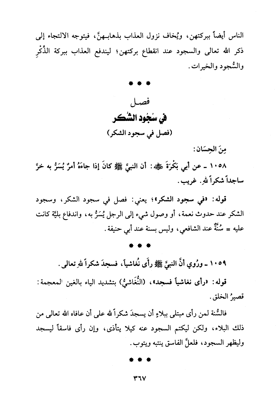 1059 - ورُوي أنَّ النبيَّ - صلى الله عليه وسلم - رأَى نُغاشيًا، فسجدَ شكرًا للهِ تعالى.