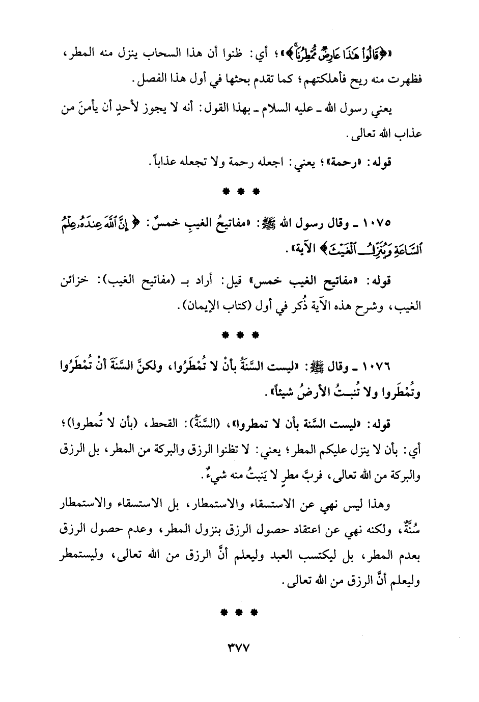 1075 - وقال رسول الله - صلى الله عليه وسلم -: "مفاتيحُ الغيبِ خمسٌ: {إِنَّ اللَّهَ عِنْدَهُ عِلْمُ السَّاعَةِ وَيُنَزِّلُ الْغَيْثَ} الآية".