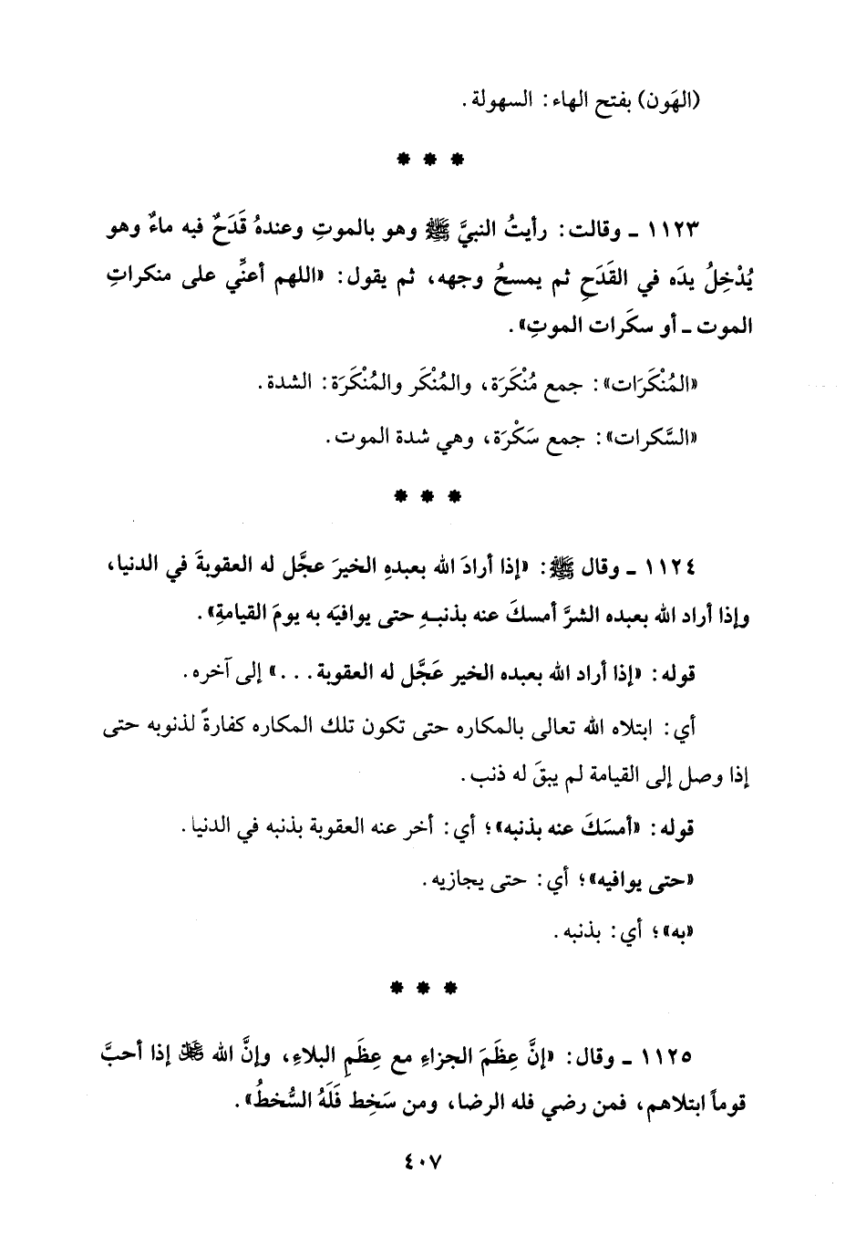 1124 - وقال - صلى الله عليه وسلم -: "إذا أرادَ الله بعبدهِ الخيرَ عجَّل له العقوبةَ في الدنيا، وإذا أراد الله بعبده الشرَّ أمسكَ عنه بذنبهِ حتى يوافيَه به يومَ القيامةِ".
