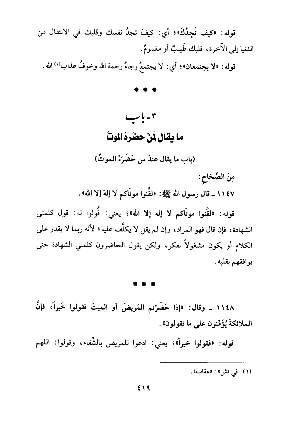 3 - باب ما يقال لمَنْ حَضَرَهُ الموتُ
