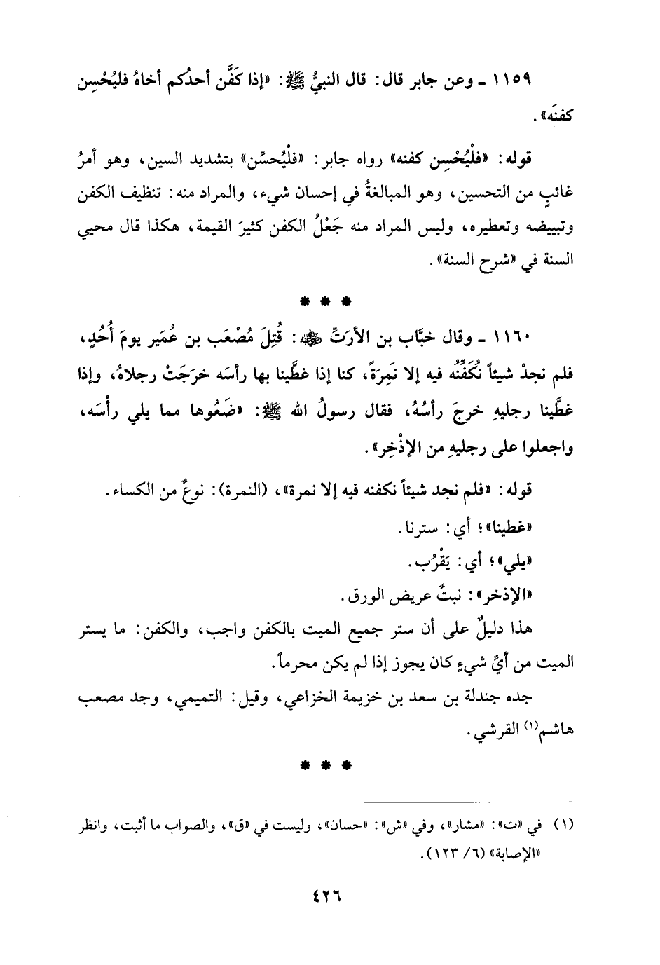 1159 - وعن جابر قال: قال النبيُّ - صلى الله عليه وسلم -: "إذا كَفَّن أحدُكم أخاهُ فليُحْسِن كفنَه"