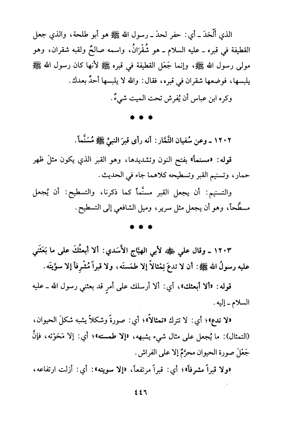 1202 - وعن سُفيان التَّمَّار: أنه رأى قبرَ النبيِّ - صلى الله عليه وسلم - مُسَنَّمًا.