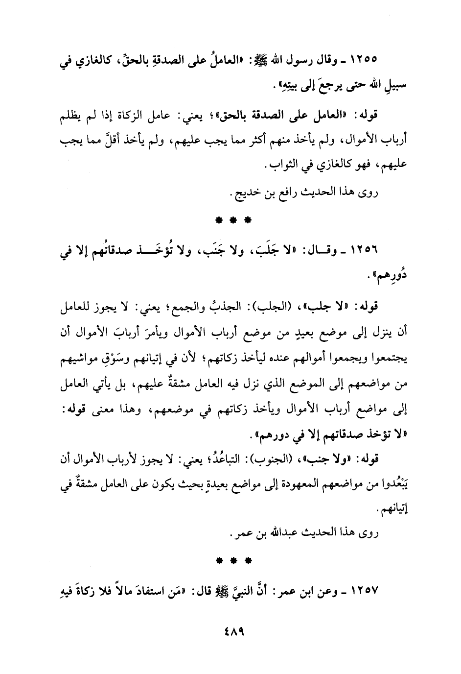 1255 - وقال رسول الله - صلى الله عليه وسلم -: "العاملُ على الصدقةِ بالحقِّ، كالغازي في سبيلِ الله حتى يرجعَ إلى بيتِهِ".