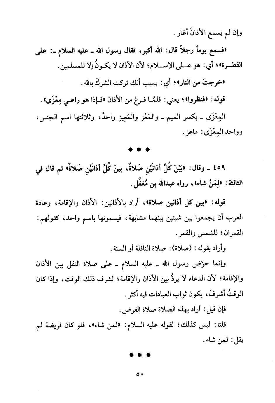 459 - وقال: "بَيْنَ كُلَّ أذانَيْنِ صَلاةٌ، بينَ كُلَّ أذانَيْنِ صَلاةٌ" ثم قال في الثالثة: "لِمَنْ شاء"، رواه عبد الله بن مُغفَّل.