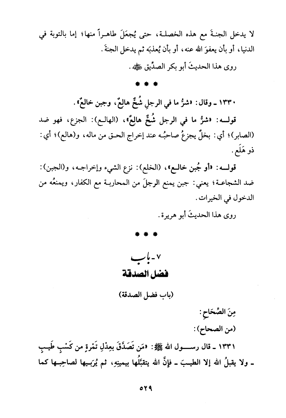 1331 - قال رسول الله - صلى الله عليه وسلم -: "مَن تَصَدَّقَ بعِدْلِ تَمْرةٍ من كَسْبٍ طَيبٍ - ولا يقبلُ الله إلا الطيبَ - فإن الله يتقبَّلُها بيمينِهِ، ثم يُرَبيها لصاحِبها كما