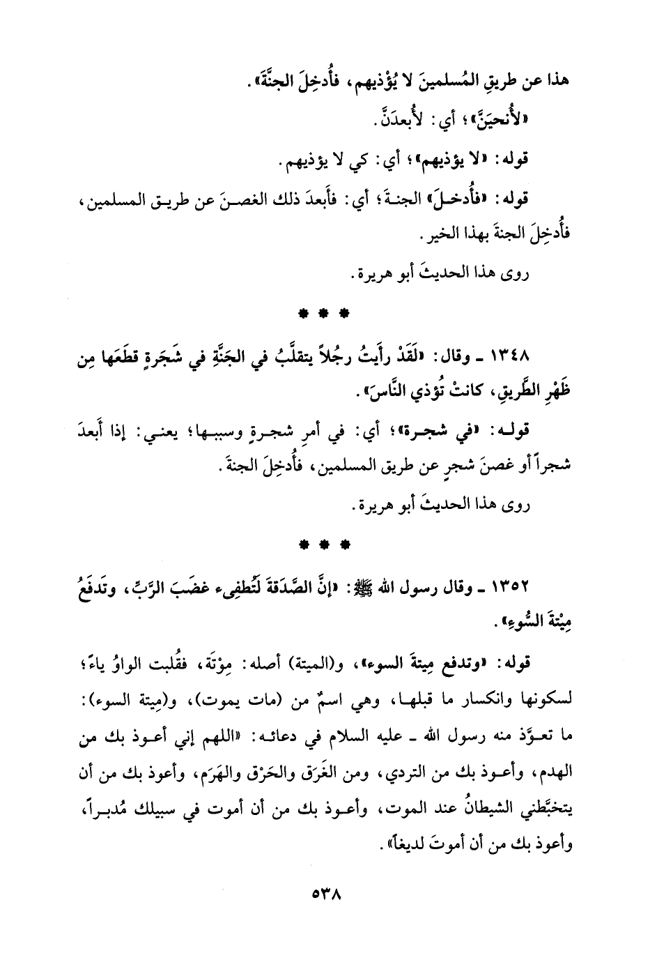 1348 - وقال: "لَقَدْ رأَيتُ رجُلاً يتقلَّبُ في الجَنَّةِ في شَجَرةٍ قطَعَها مِن ظَهْرِ الطَّريقِ، كانتْ تُؤذي النَّاسَ".