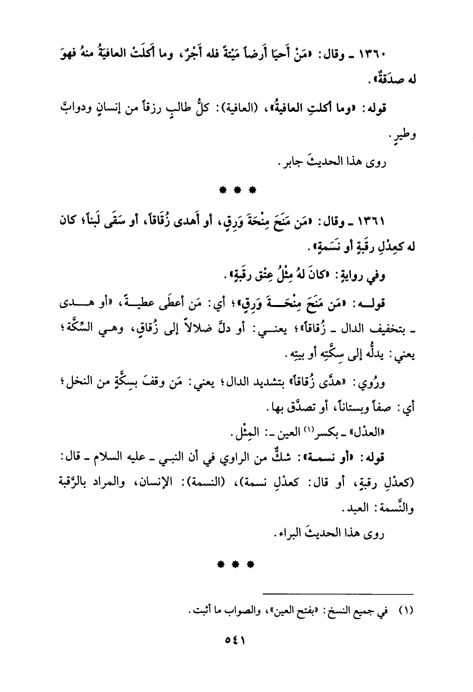 1360 - وقال: "مَنْ أَحيَا أَرضًا مَيْتةً فله أَجْرٌ، وما أَكلَتْ العافيَةُ منهُ فهوَ له صدَقةٌ".