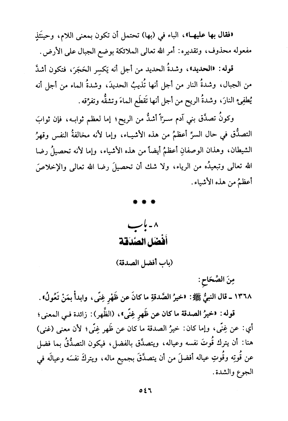 1368 - قال النبيُّ - صلى الله عليه وسلم -: "خيرُ الصَّدقةِ ما كانَ عن ظَهْرِ غِنًى، وابدأْ بمَنْ تَعُولُ".