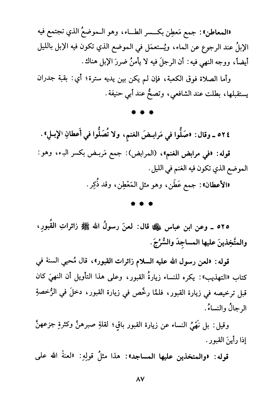524 - وقال: "صَلُّوا في مَرابضَ الغنمِ، ولا تُصَلُّوا في أَعطانِ الإِبلِ".
