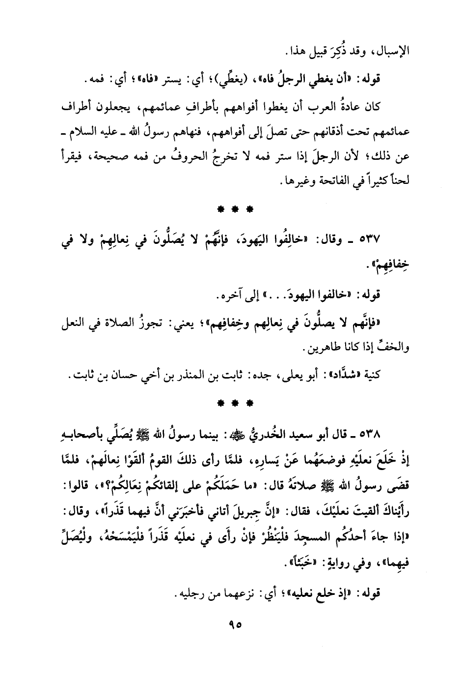 537 - وقال: "خالِفُوا اليَهودَ، فإنَّهُمْ لا يُصَلُّونَ في نِعالِهِمْ ولا في خِفافِهِمْ".