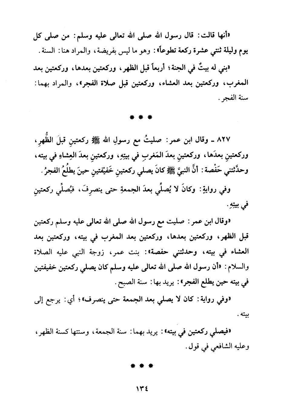 "بني له بيتٌ في الجنة؛ أربعًا قبل الظهر، وركعتين بعدها، وركعتين بعد المغرب، وركعتين بعد العشاء، وركعتين قبل صلاة الفجر"، والمراد بهما: سنة الفجر.