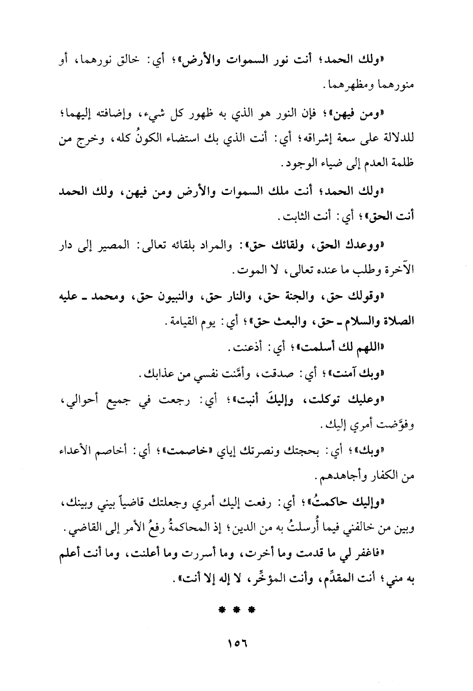 "ولك الحمد؛ أنت نور السموات والأرض"؛ أى: خالق نورهما، أو منورهما ومظهرهما.