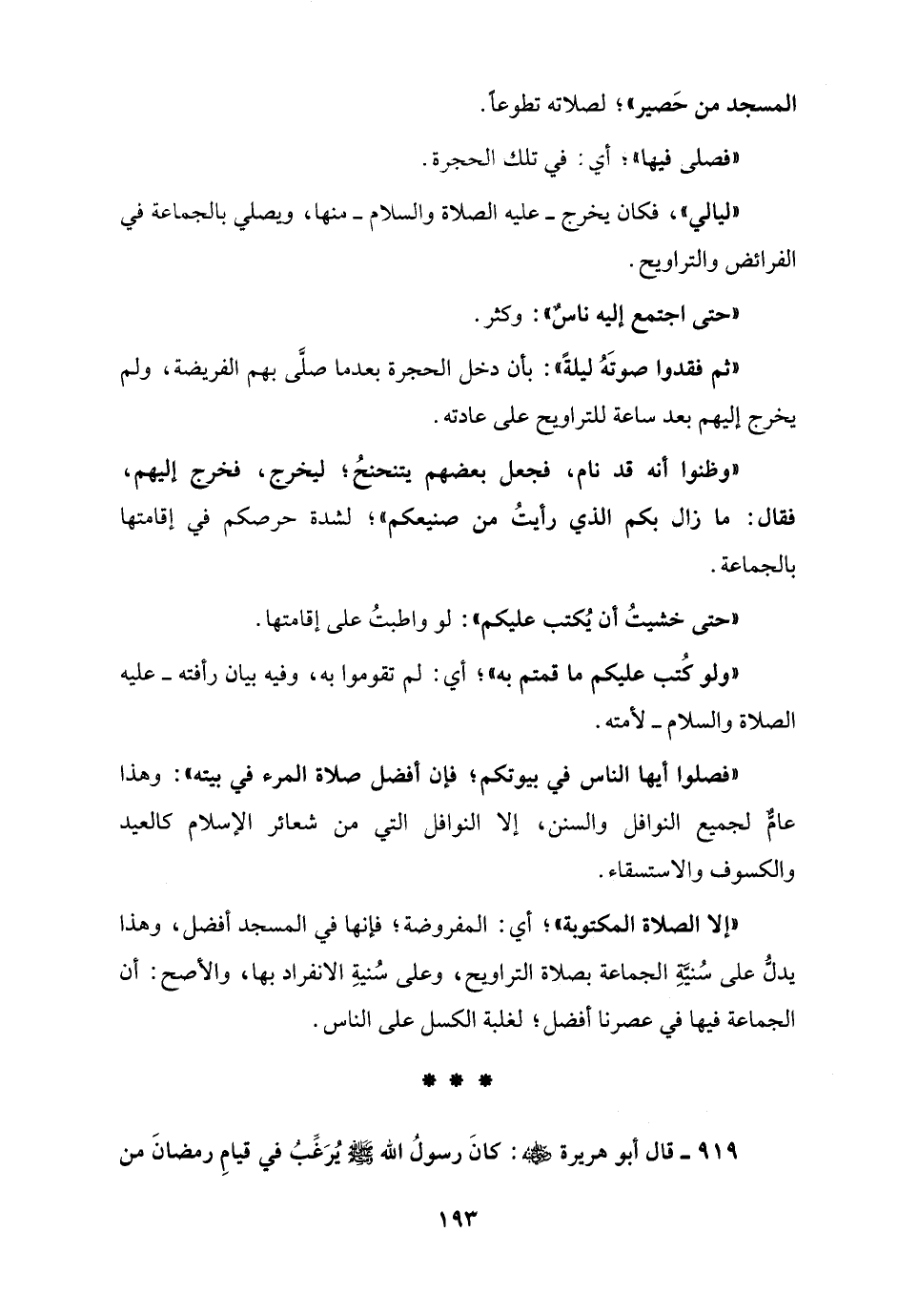 919 - قال أبو هريرة - رضي الله عنه -: كانَ رسول الله - صلى الله عليه وسلم - يُرَغِّبُ في قيامِ رمضانَ من