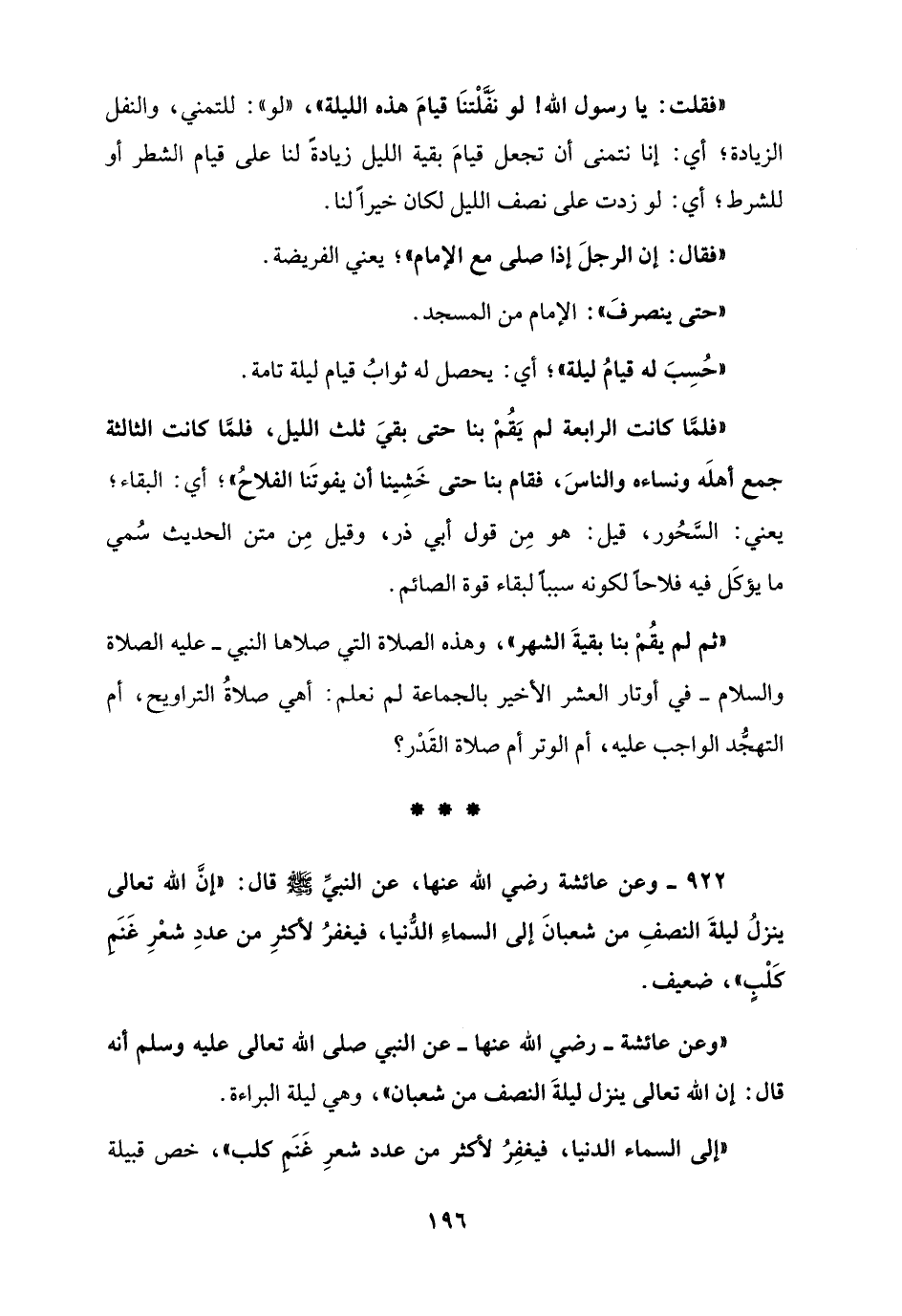 922 - وعن عائشة رضي الله عنها، عن النبيِّ - صلى الله عليه وسلم - قال: "إنَّ الله تعالى ينزلُ ليلةَ النصفِ من شعبانَ إلى السماءَ الدُّنيا، فيغفرُ لأكثرِ من عددِ شعْرِ غَنَمِ كَلْبٍ"، ضعيف.