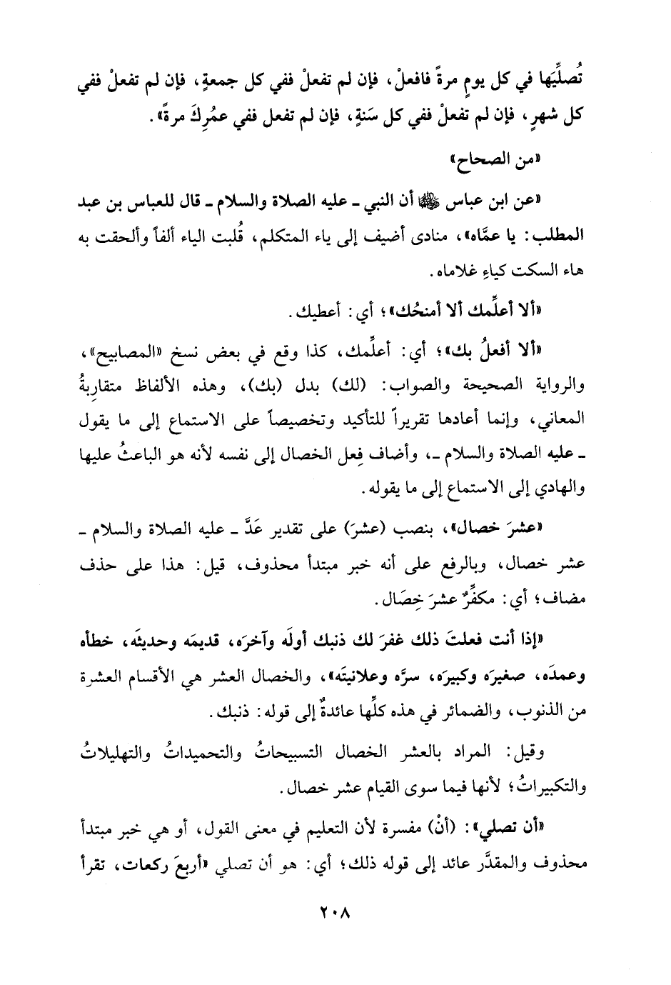 "إذا أنت فعلتَ ذلك غفرَ لك ذنبك أولَه وآخرَه، قديمَه وحديثَه، خطأه وعمدَه، صغيرَه وكبيرَه، سرَّه وعلانيتَه"، والخصال العشر هي الأقسام العشرة من الذنوب، والضمائر في هذه كلِّها عائدةٌ إلى قوله: ذنبك.