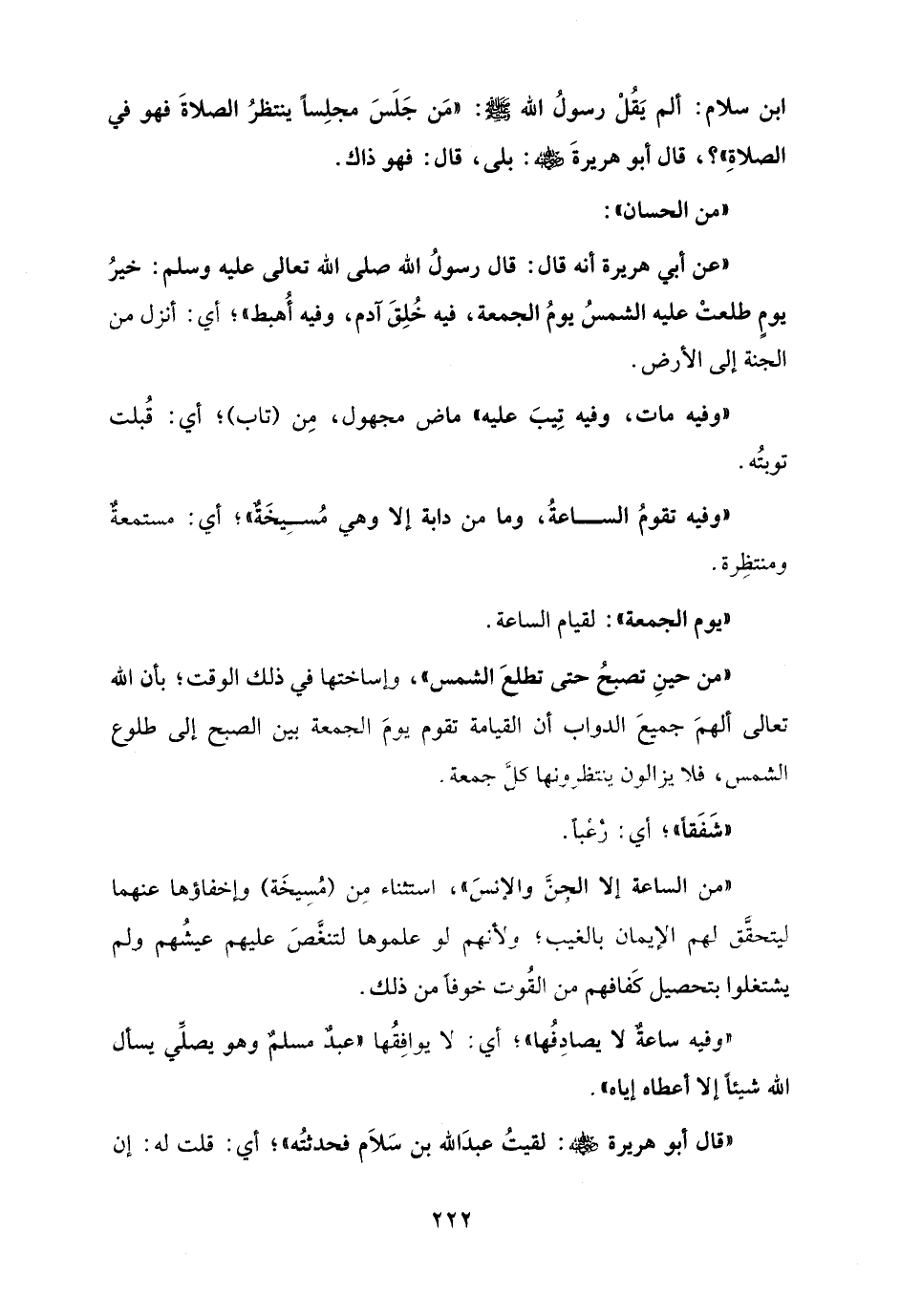 ابن سلام: ألم يَقُلْ رسولُ الله - صلى الله عليه وسلم -: "مَن جَلَسَ مجلِسًا ينتظرُ الصلاةَ فهو في الصلاةِ"؟، قال أبو هريرةَ - رضي الله عنه -: بلى، قال: فهو ذاك.