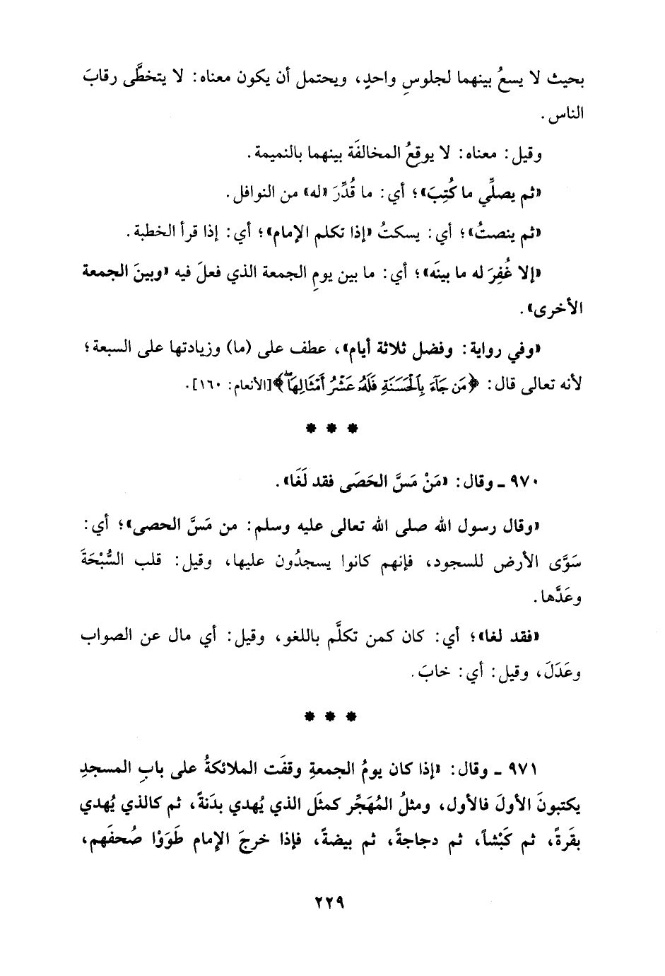 970 - وقال: "مَنْ مَسَّ الحَصَى فقد لَغَا".