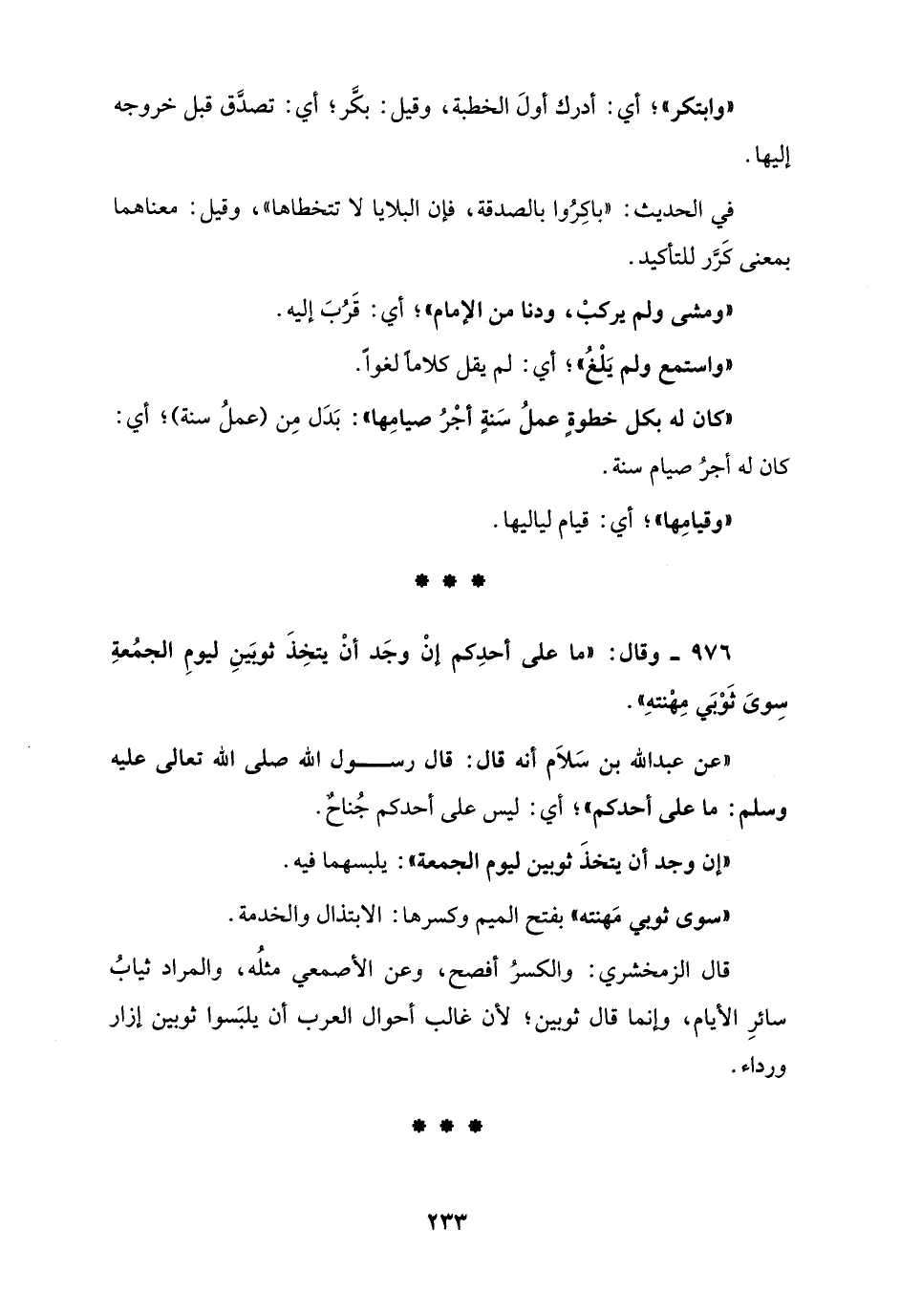 976 - وقال: "ما على أحدِكم إنْ وجَد أنْ يتخِذَ ثوبَينِ ليومِ الجمُعةِ سِوىَ ثَوْبَي مِهْنتهَ".