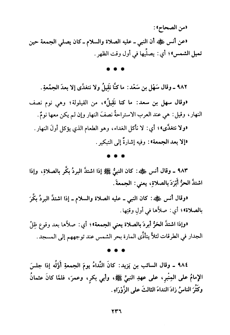 983 - وقال أنس - رضي الله عنه -: كان النبيُّ - صلى الله عليه وسلم - إذا اشتدَّ البردُ بكَّر بالصلاةِ، وإذا اشتدَّ الحرُّ أَبْرَدَ بالصلاةِ، يعني: الجمعةَ.