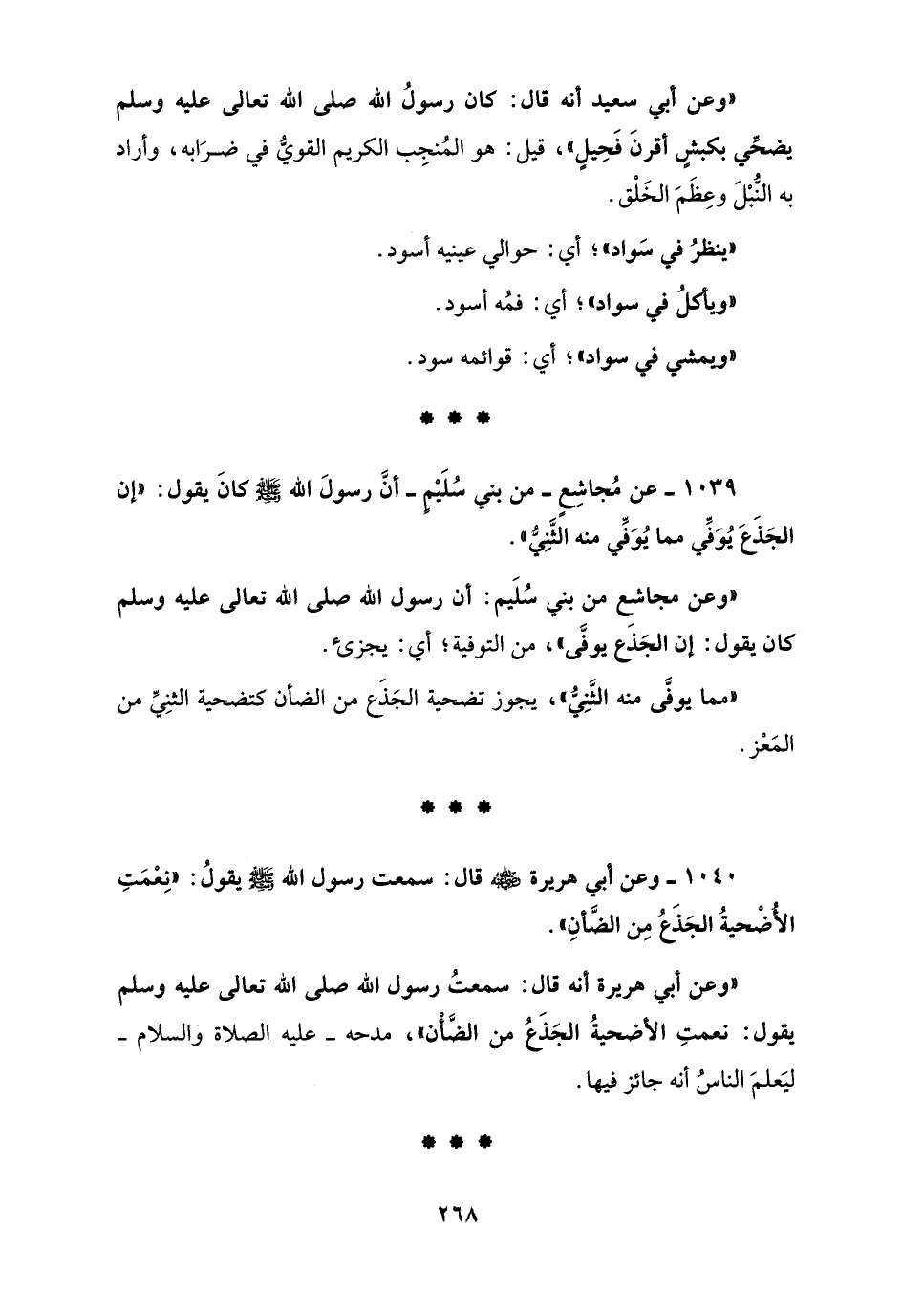 1039 - عن مُجاشِعٍ - من بني سُلَيْم - أنَّ رسولَ الله - صلى الله عليه وسلم - كانَ يقول: إن الجَذع يُوَفِّي مما يُوَفِّي منه الثَّنِي".