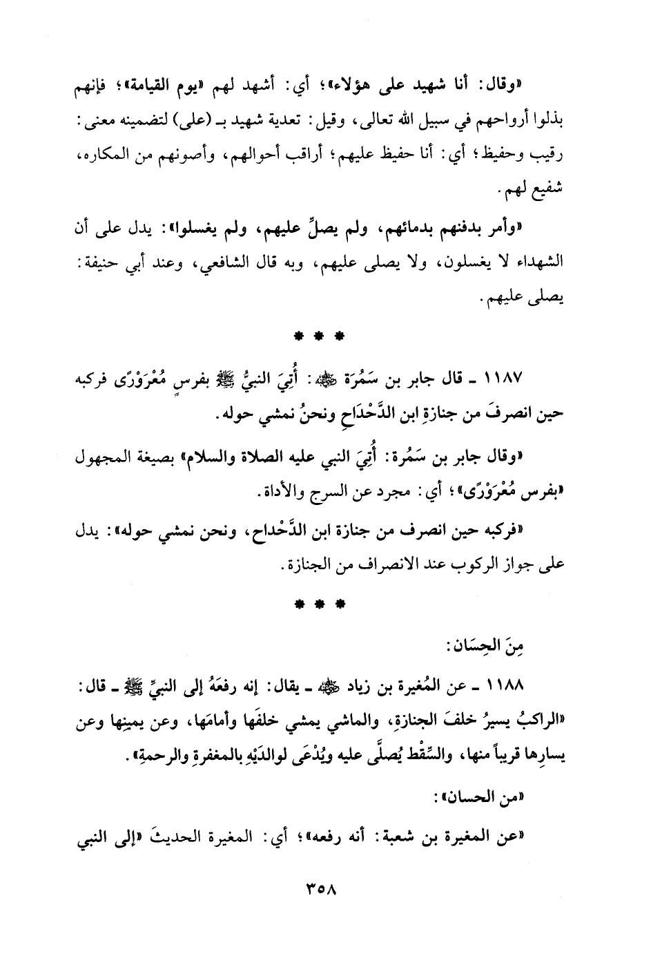 1187 - قال جابر بن سَمُرَة - رضي الله عنه -: أُتِيَ النبيُّ - صلى الله عليه وسلم - بفرسٍ مُعْرَوْرًى فركبه حين انصرفَ من جنازةِ ابن الدَّحْدَاحِ ونحنُ نمشي حوله.