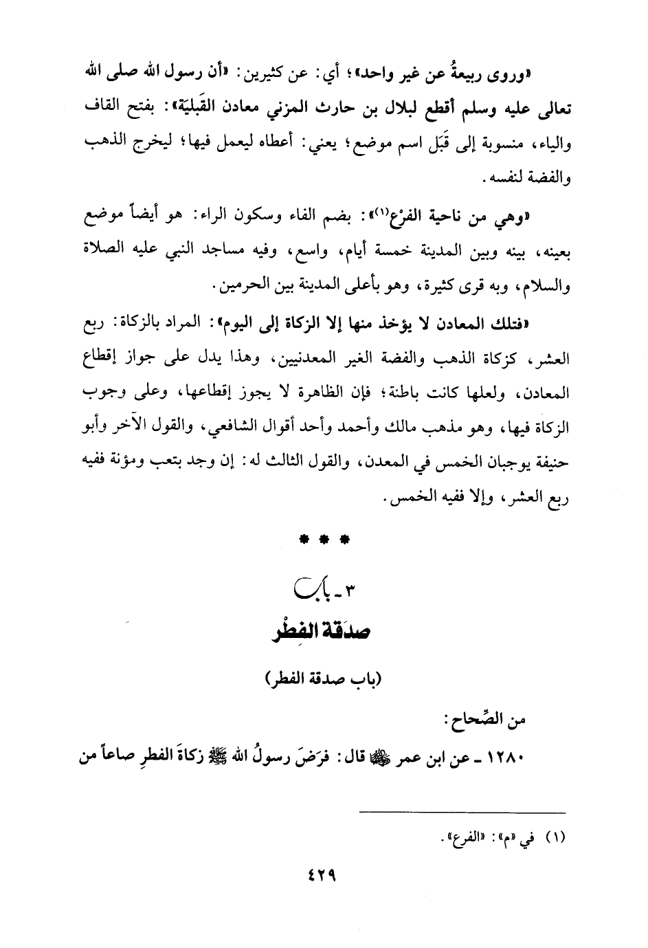 1280 - عن ابن عمر - رضي الله عنه - قال: فرَضَ رسولُ الله - صلى الله عليه وسلم - زكاةَ الفطرِ صاعاً من