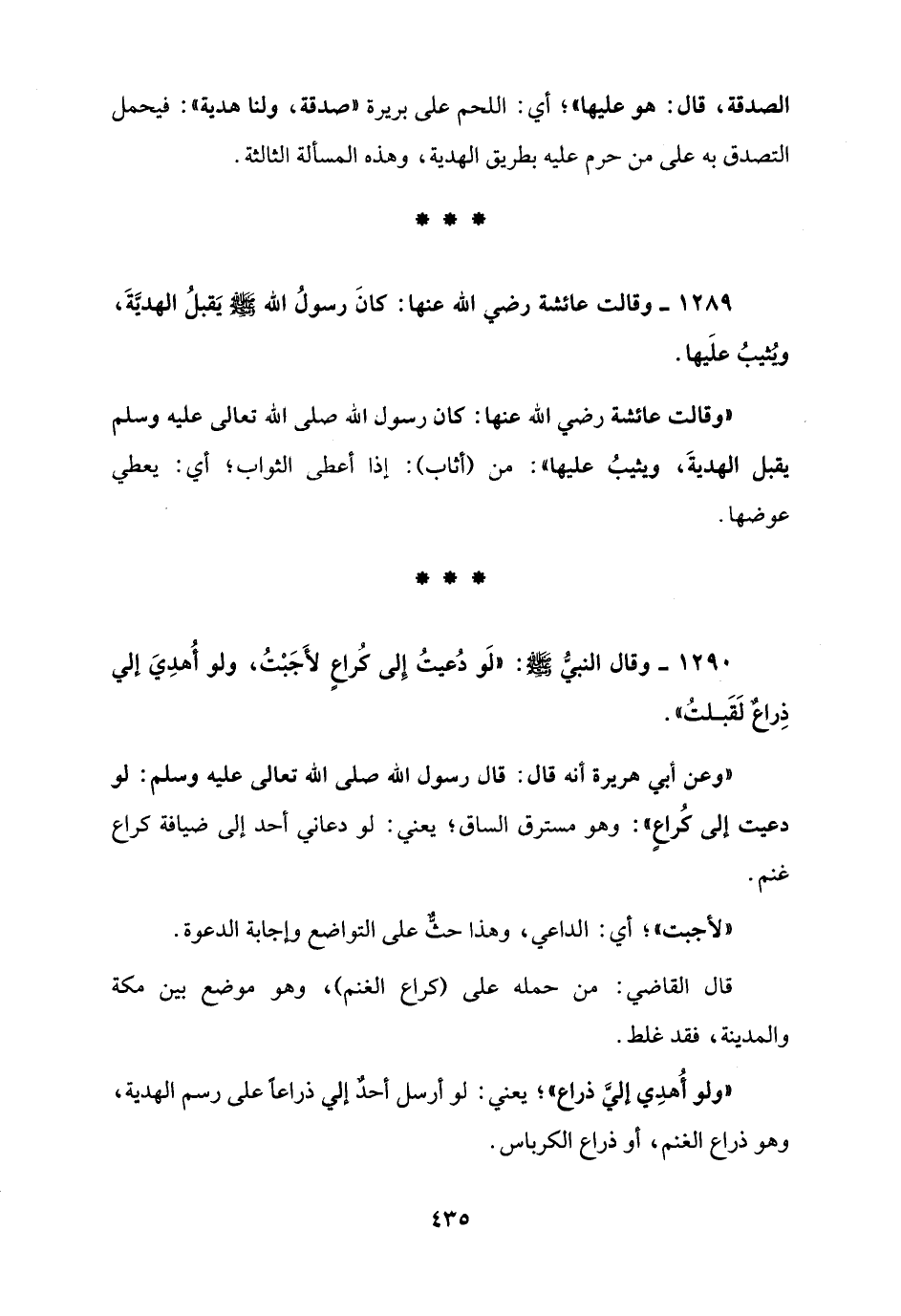 1290 - وقال النبيُّ - صلى الله عليه وسلم -: "لَو دُعيتُ إِلى كُراعٍ لأَجَبْتُ، ولو أُهدِيَ إلي ذِراعٌ لَقَبلتُ".