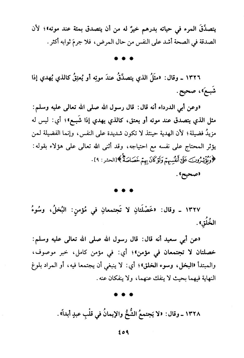 1327 - وقال: "خَصْلَتانِ لا تَجتمعانِ في مُؤمنٍ: البُخلُ، وسُوءُ الخُلُقِ".