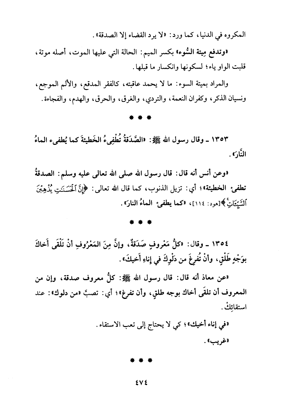 1353 - وقال رسول الله - صلى الله عليه وسلم -: "الصَّدَقةُ تُطْفِئُ الخَطيئةَ كما يُطفئ الماءُ النَّارَ".