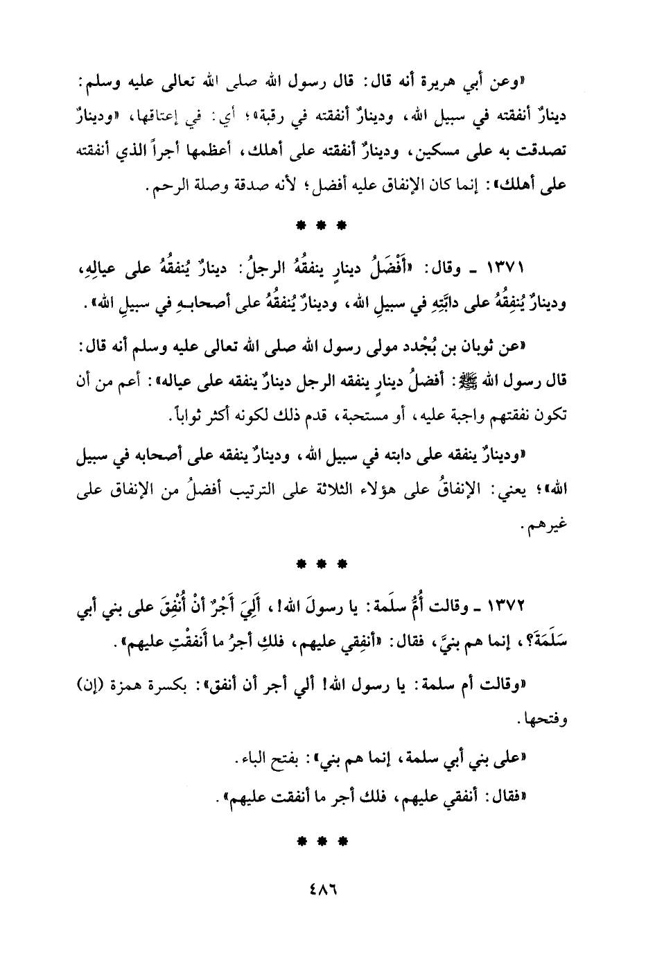 1372 - وقالت أُمُّ سلَمة: يا رسولَ الله!، أَلِيَ أَجْرٌ أنْ أُنْفِقَ على بني أبي سَلَمَةَ؟، إنما هم بنيَّ، فقال: "أنفِقي عليهم، فلكِ أجرُ ما أَنفقْتِ عليهم".