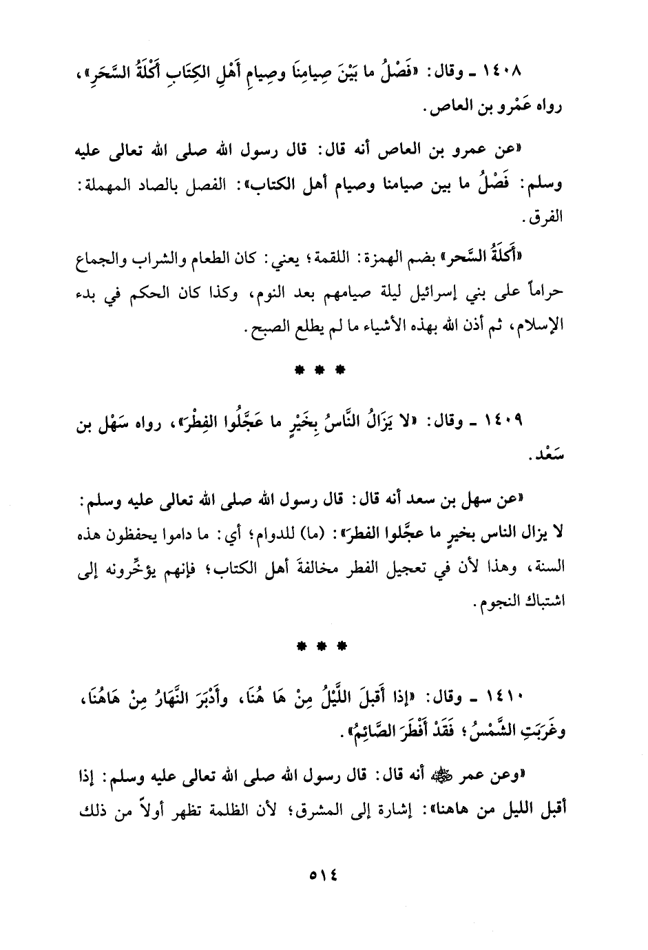 1408 - وقال: "فَصْلُ ما بَيْنَ صِيامِنَا وصِيامِ أَهْلِ الكِتَابِ أَكْلَةُ السَّحَرِ"، رواه عَمْرو بن العاص.