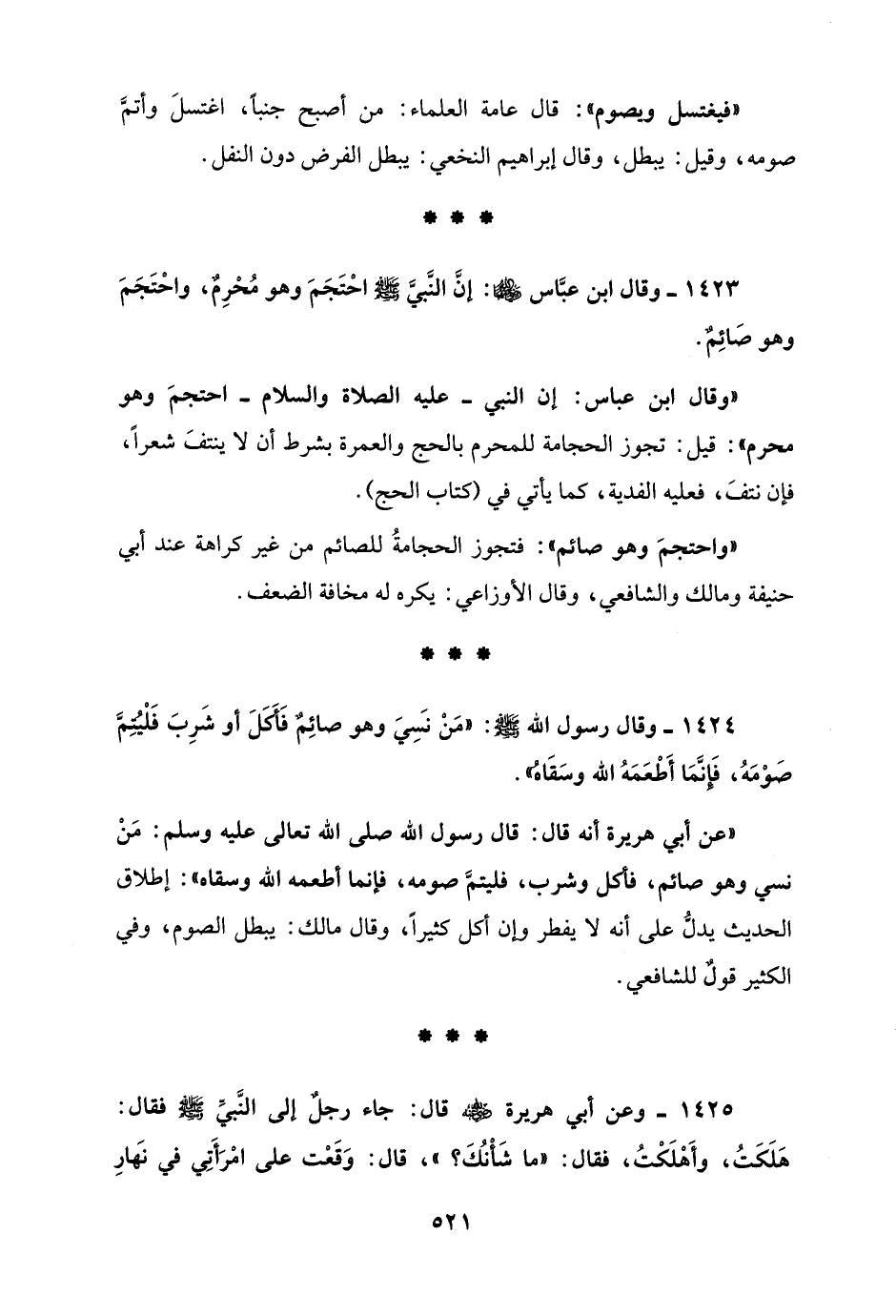 1425 - وعن أبي هريرة - رضي الله عنه - قال: جاء رجلٌ إلى النَّبيِّ - صلى الله عليه وسلم - فقال: هَلَكَتُ، وأَهْلَكْتُ، فقال: "ما شَأْنُكَ؟ "، قال: وَقَعْت على امْرَأَتِي في نَهارِ