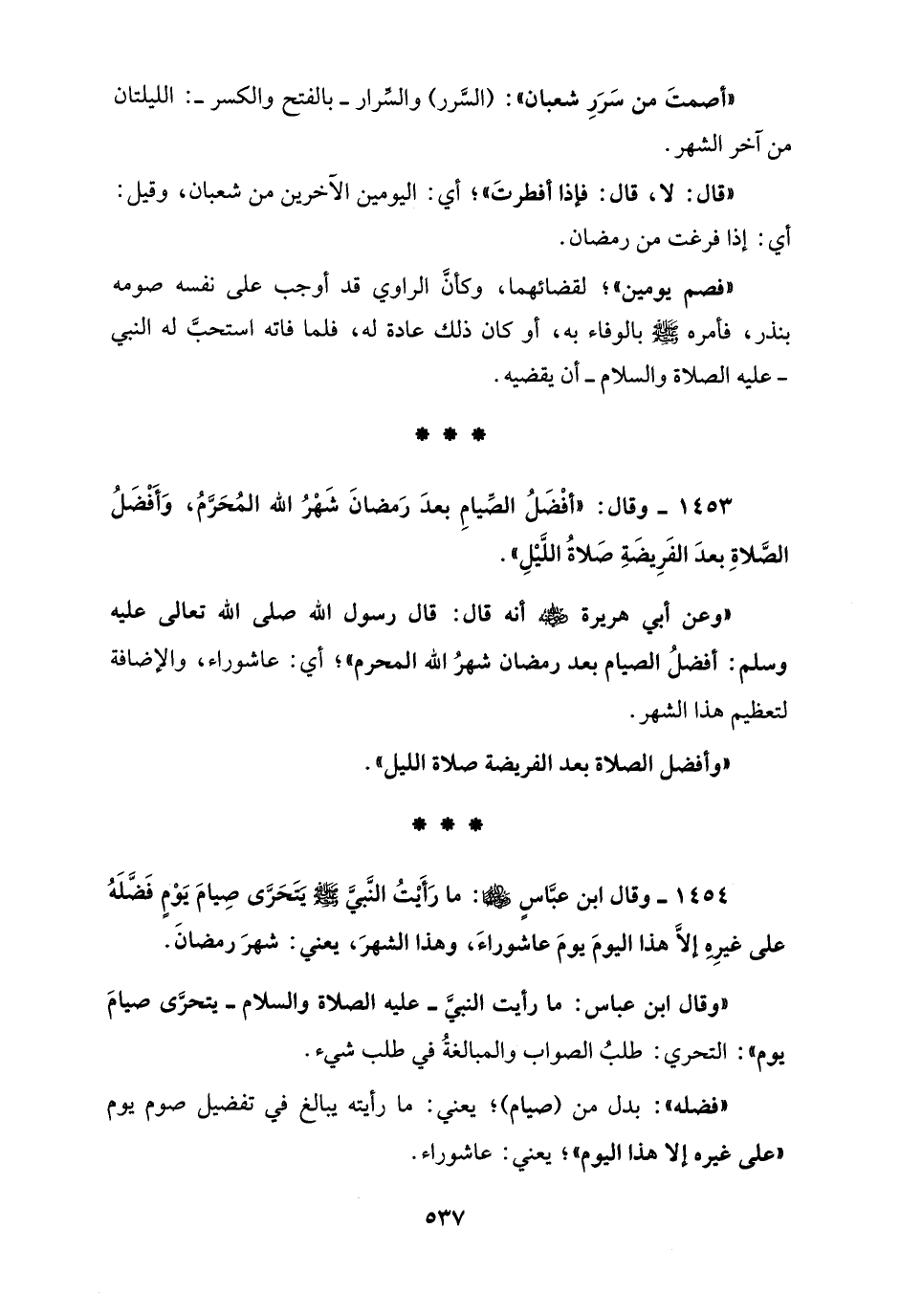 1453 - وقال: "أفْضَلُ الصِّيامِ بعدَ رَمضانَ شَهْرُ الله المُحَرَّمُ، وَأَفْضَلُ الصَّلاةِ بعدَ الفَرِيضَةِ صَلاةُ اللَّيْلِ".