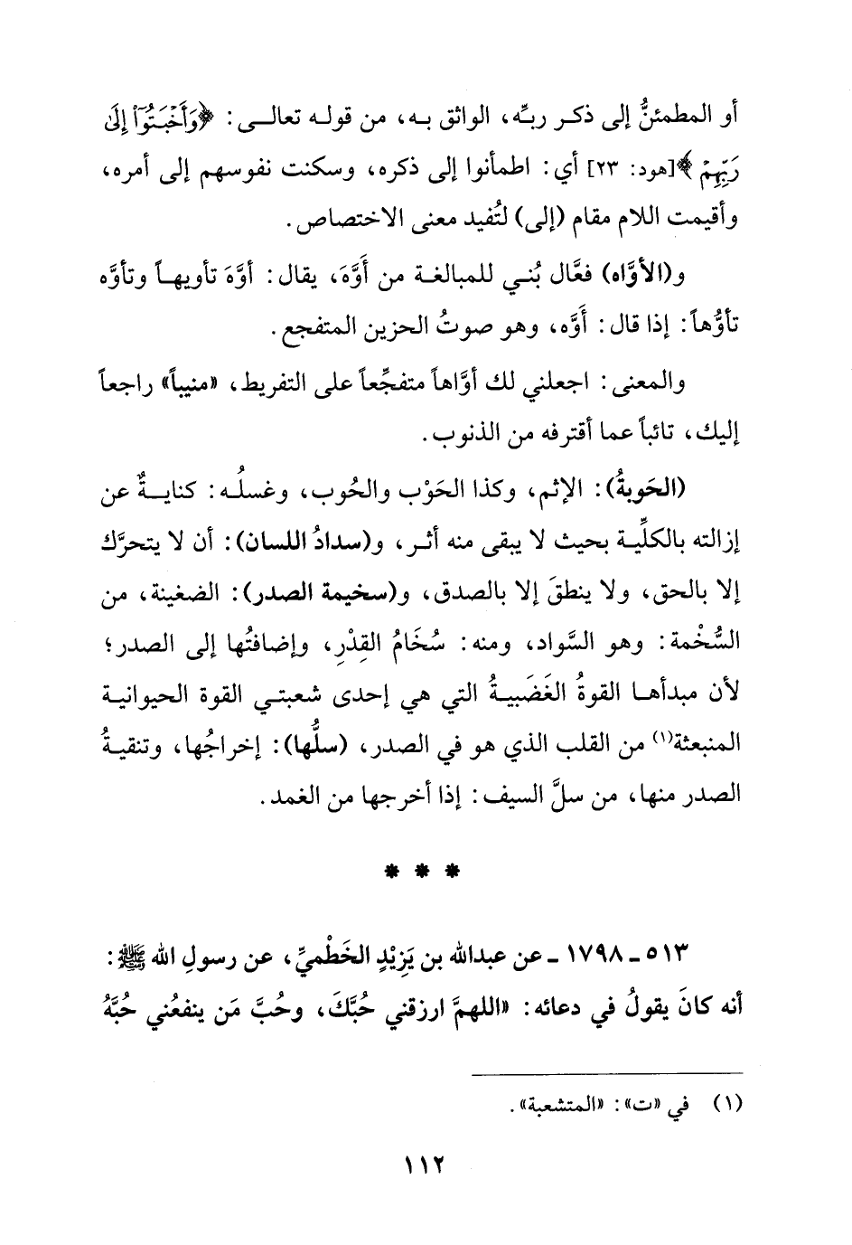 (الحوبة): الإثم, وكذا الحوب والحوب, وغسله: كناية عن إزالته بالكلية بحيث لا يبقى منه أثر, و (سداد اللسان): أن لا يتحرك إلا بالحق, ولا ينطق إلا بالصدق, و (سخيمة الصدر): الضغينة, من السخمة: وهو السواد, ومنه: سخام القدر, وإضافتها إلى الصدر, لأن مبدأها القوة الغضبية التي هي إحدى شعبتي القوة الحيوانية المنبعثة من القلب الذي هو في الصدر, (سلها): إخراجها, وتنقية الصدر منها, من سل السيف: إذا أخرجها من الغمد.