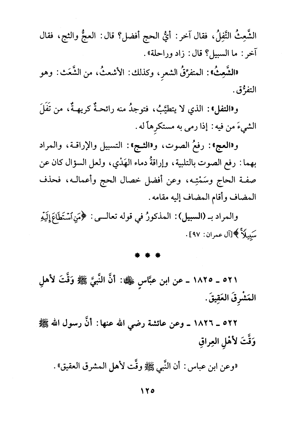 521 - 1825 - عن ابن عباس رضي الله عنهما: أن النبي صلى الله عليه وسلم وقت لأهل المشرق العقيق.