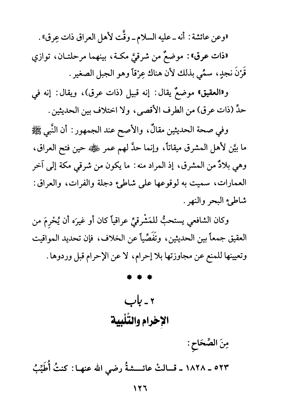 " وعن عائشة: أنه - عليه السلام - وقت لأهل العراق ذات عرق ".