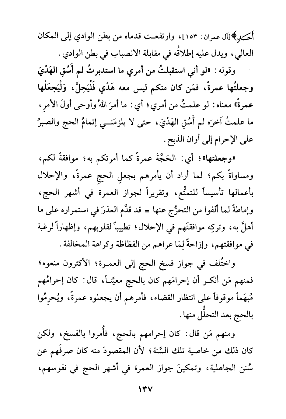 ومنهم من قال: كان إحرامهم بالحج, فأمروا بالفسخ, ولكن كان ذلك من خاصية تلك السنة, لأن المقصود منه كان صرفهم عن سنن الجاهلية, وتمكين جواز العمرة في أشهر الحج في نفوسهم,