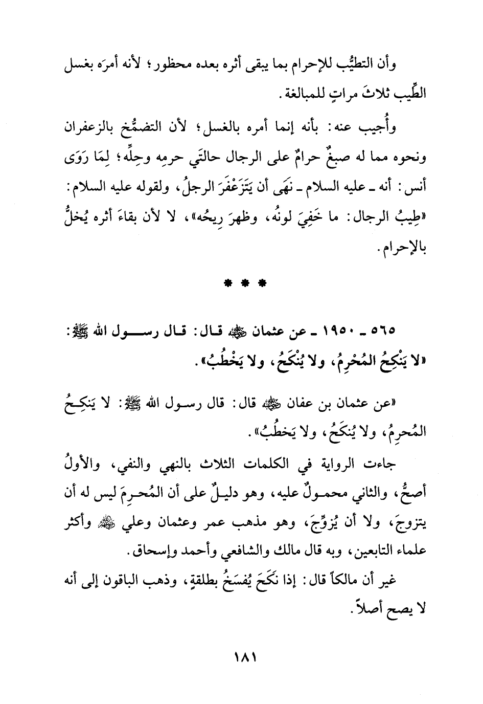 565 - 1950 - عن عثمان رضي الله عنه قال: قال رسول الله: " لا ينكح المحرم, ولا ينكح, ولا يخطب ".