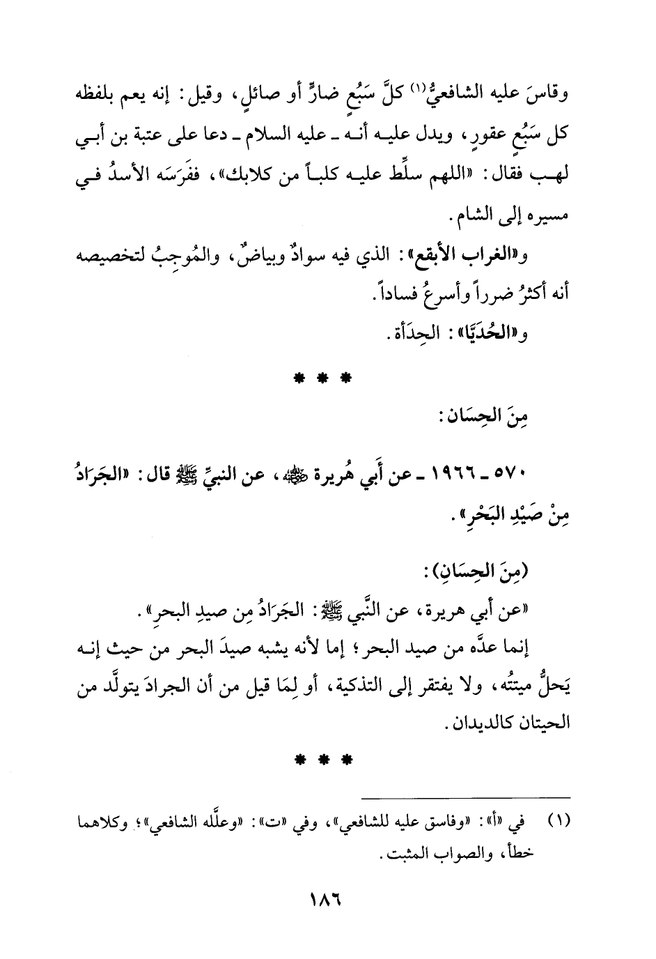 570 - 1966 - عن أبي هريرة رضي الله عنه, عن النبي صلى الله عليه وسلم قال: " الجراد من صيد البحر ".