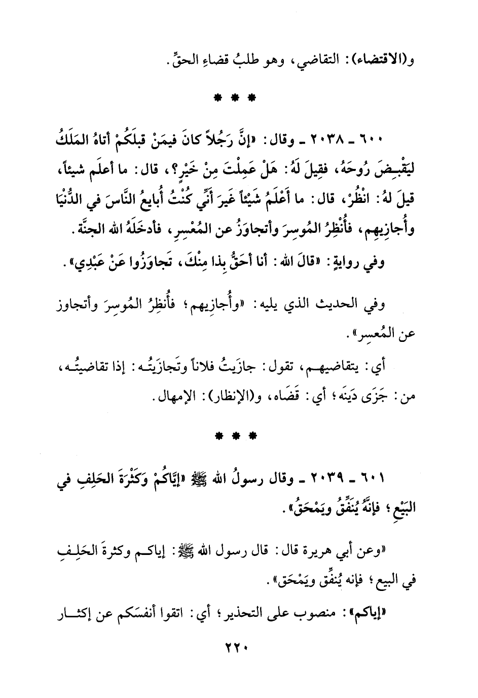 601 - 2039 - وقال رسول الله صلى الله عليه وسلم " إياكم وكثرة الحلف في البيع, فإنه ينفق ويمحق ".