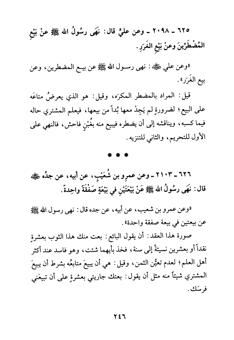 625 – 2098 – وعن علي قال: نهى رسول الله صلى الله عليه وسلم عن بيع المضطرين وعن بيع الغرر"