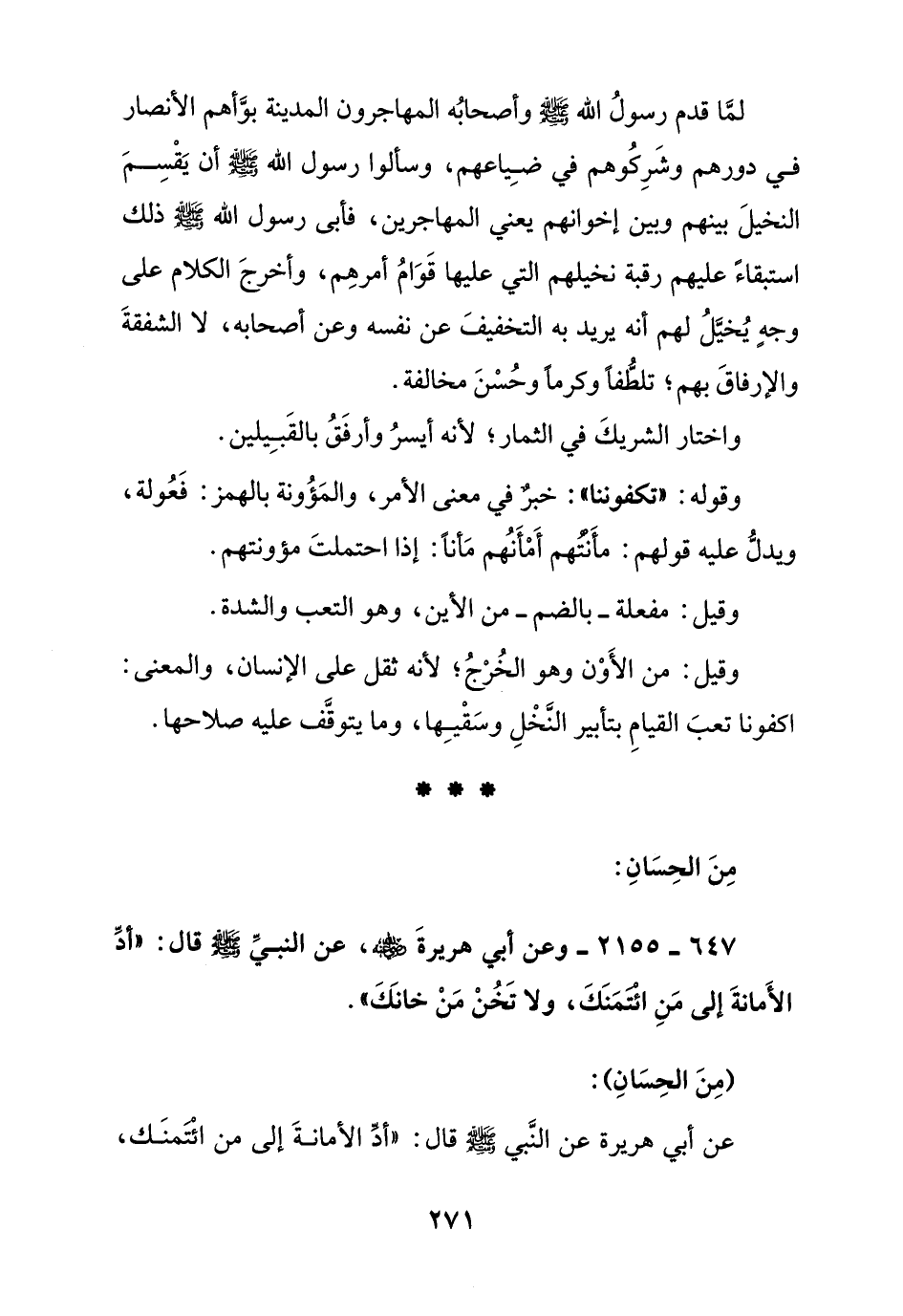 647 - 2155 - وعن أبي هريرة رضي الله عنه, عن النبي صلى الله عليه وسلم قال: " أد الأمانة إلى من ائتمنك, ولا تخن من خانتك ".