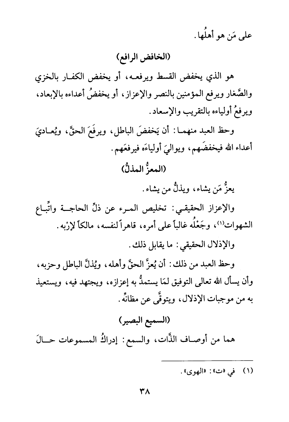 وحظ العبد منهما: أن يخفض الباطل, ويرفع الحق, ويعادي أعداء الله فيخفضهم, ويوالي أولياءه فيرفعهم.