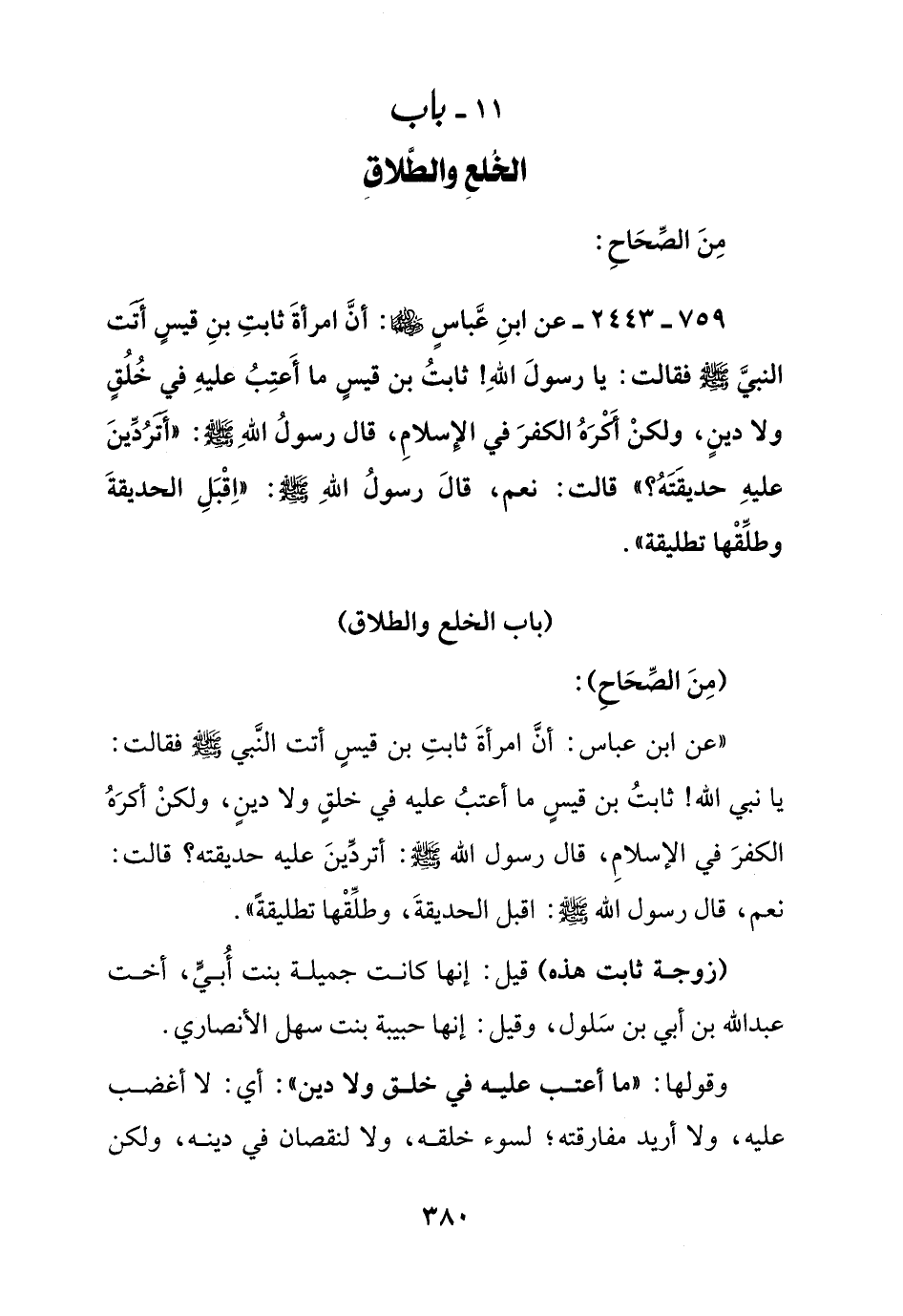 (باب الخلع والطلاق)