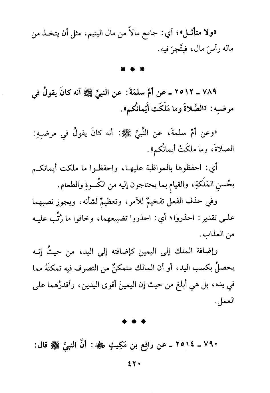 789 - 2512 - عن أم سلمة: عن النبي صلى الله عليه وسلم أنه كان يقول في مرضه: " الصلاة وما ملكت أيمانكم ".