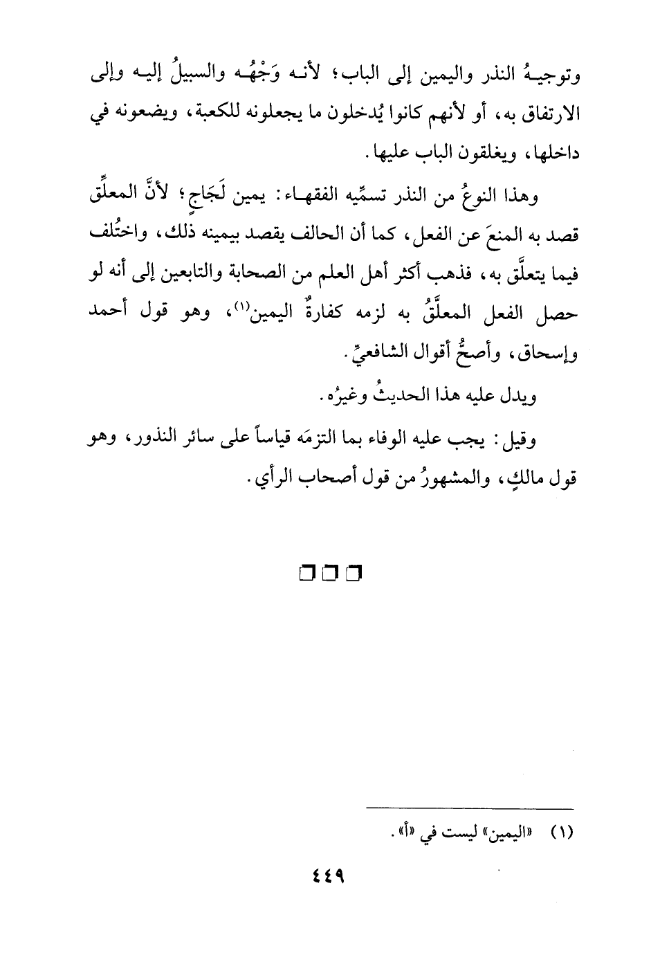 وقيل: يجب عليه الوفاء بما التزمه قياسا على سائر النذور, وهو قول مالك, والمشهور من قول أصحاب الرأي.