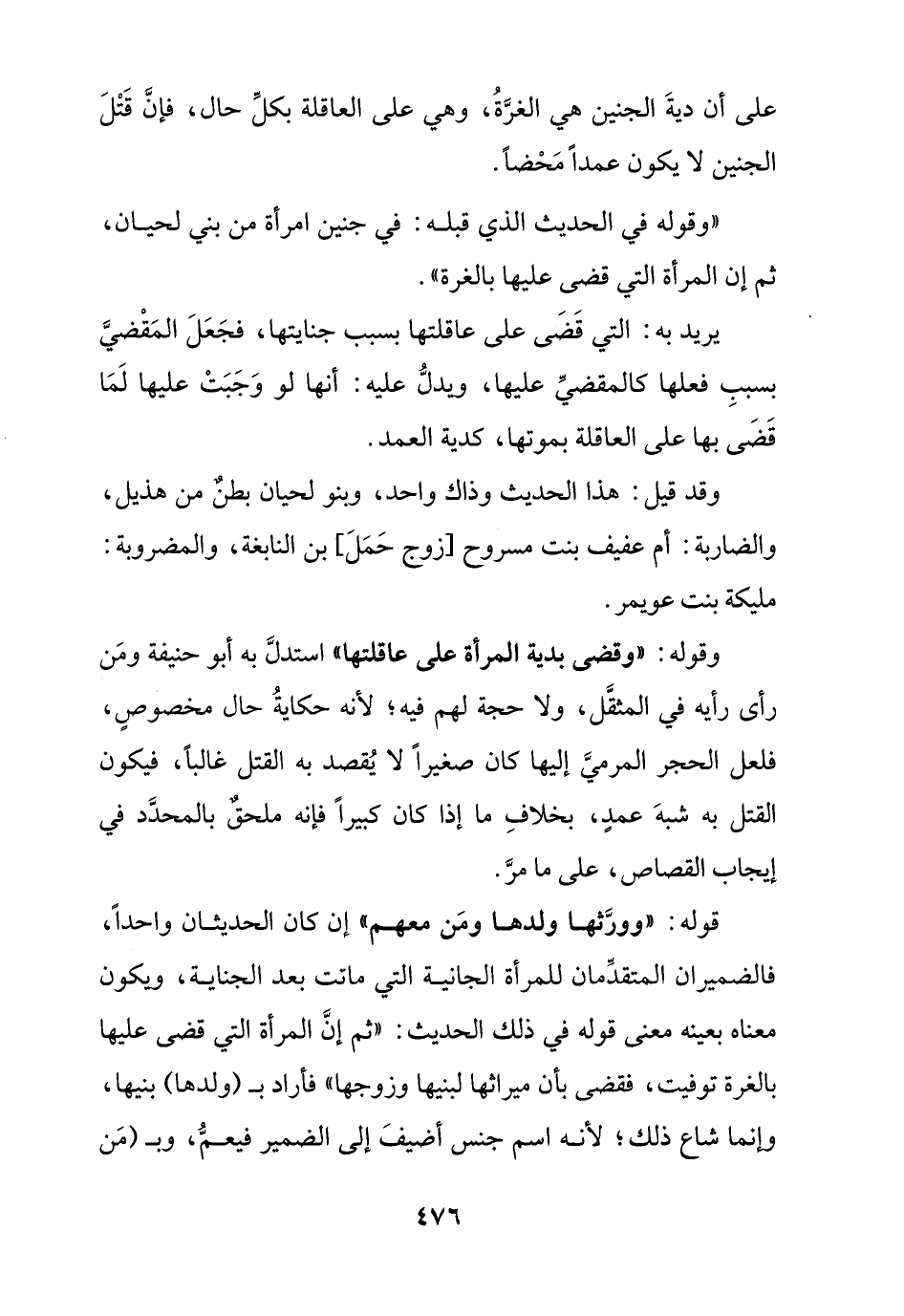 " وقوله في الحديث الذي قبله: في جنين امرأة من بني لحيان, ثم إن المرأة التي قضى عليها بالغرة ".