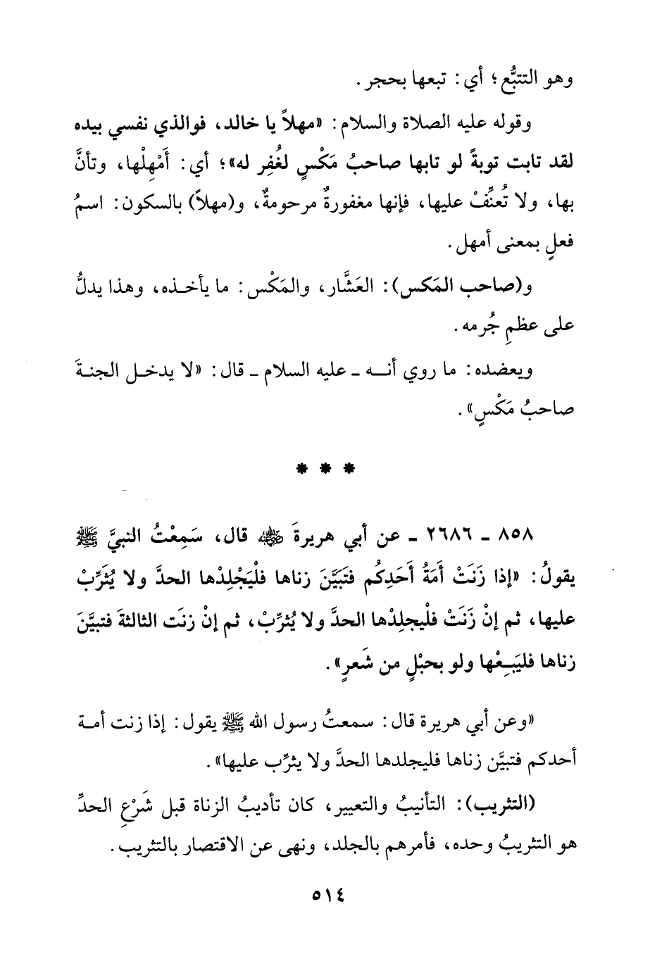 858 - 2686 - عن أبي هريرة رضي الله عنه قال, سمعت النبي صلى الله عليه وسلم يقول: " إذا زنت أمة أحدكم فتبين زناها فليجلدها الحد ولا يثرب عليها, ثم إن زنت فليجلدها الحد ولا يثرب, ثم إن زنت الثالثة فتبين زناها فليبعها ولو بحبل من شعر "