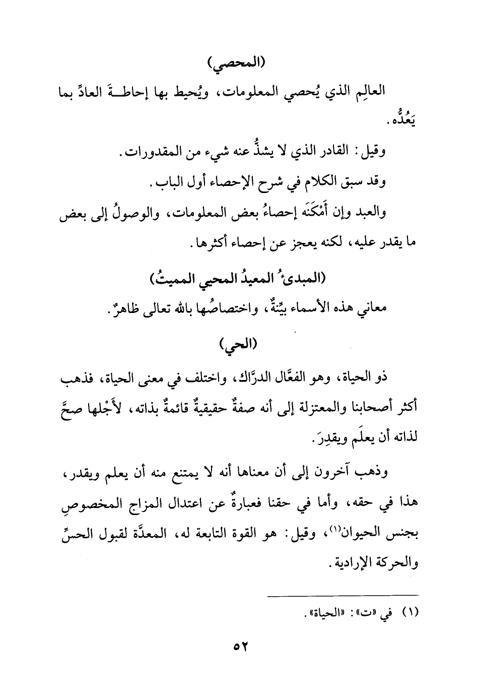 وذهب آخرون إلى أن معناها أنه لا يمتنع منه أن يعلم ويقدر هذا في حقه, وأما في حقنا فعبارة عن اعتدال المزاج المخصوص بجنس الحيوان, وقيل: هو القوة التابعة له, المعدة لقبول الحس والحركة الإرادية.