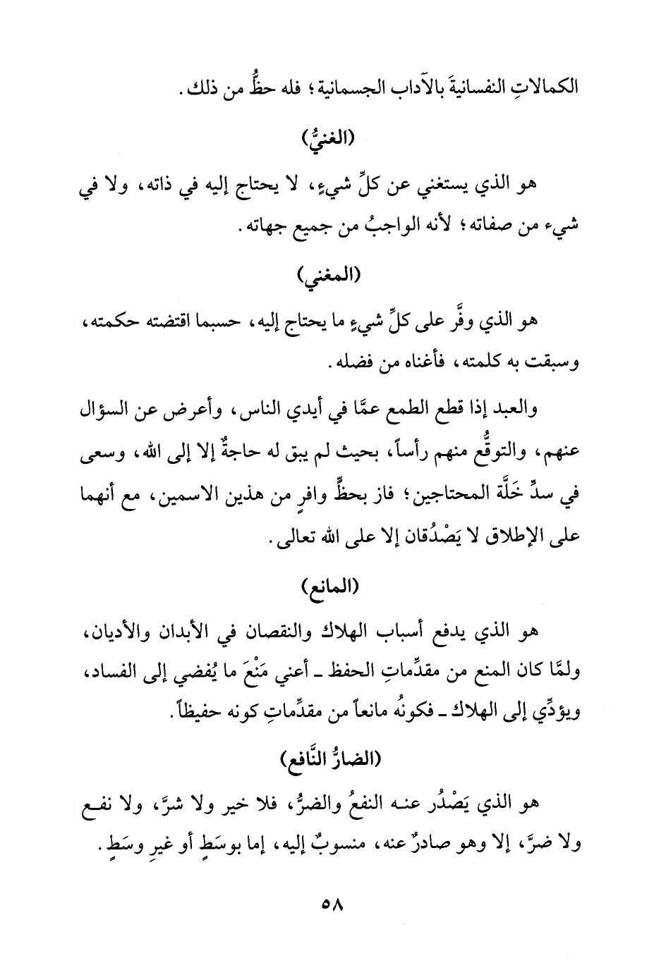 هو الذي يصدر عنه النفع والضر, فلا خير ولا شر, ولا نفع ولا ضر, إلا وهو صادر عنه, منسوب إليه, إما بوسط أو غير وسط.